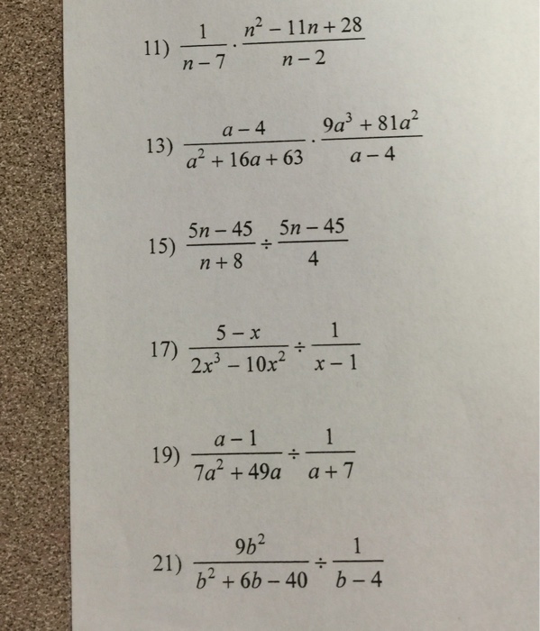 Solved 1 N 7 N 2 11n 28 N 2 X 2 11x 10 2 X Chegg Com