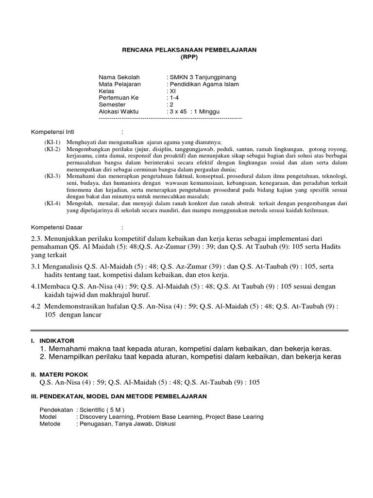 Silabus Kurikulum 2013 Pai Smk Sma Kls Xi