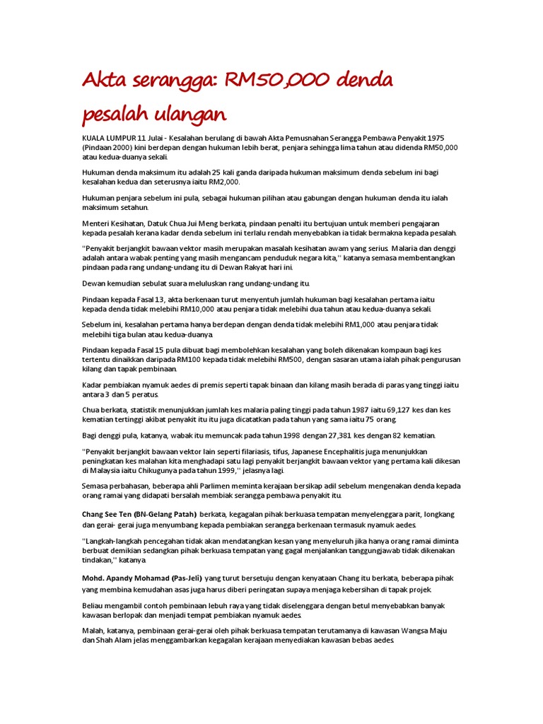 Surau Taman Alamanda Senawang Maklumat Terkini Wabak Denggi