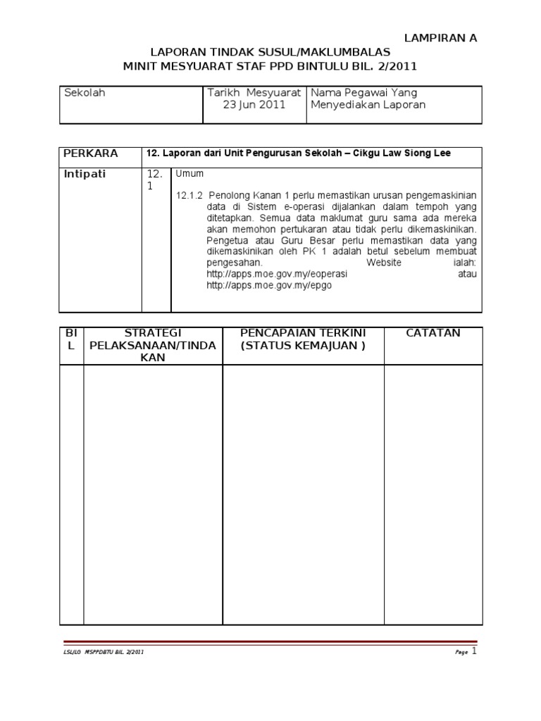 Tindak Susul Maklum Balas Ms Bil 2 2011 Lampiran A Ppd