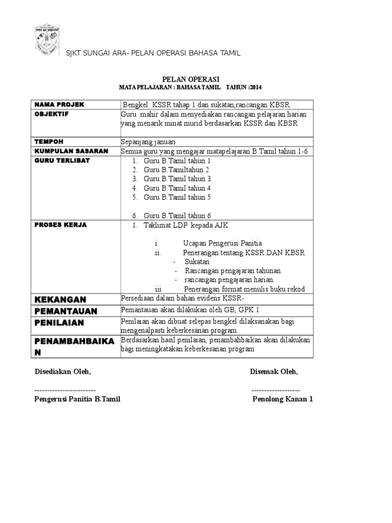 Sjkt Sungai Ara Pelan Operasi Bahasa Tamil