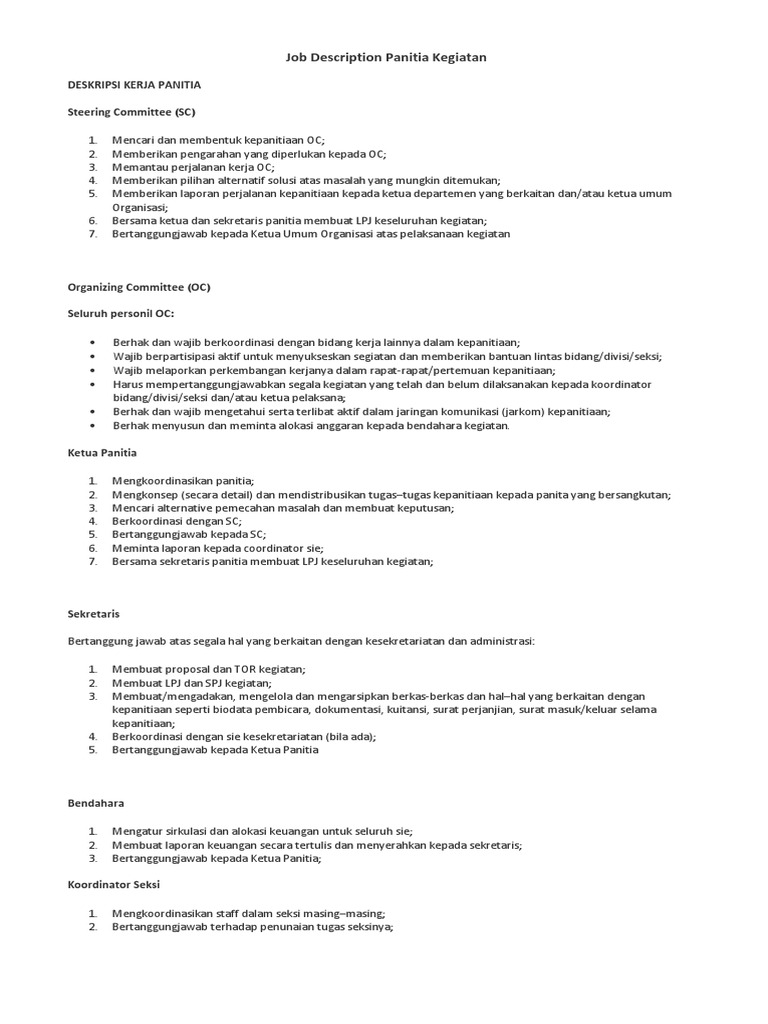 Doc Job Description Panitia Kegiatan Deskripsi Kerja Panitia Steering Committee Ilwan Syahwildan Academia Edu