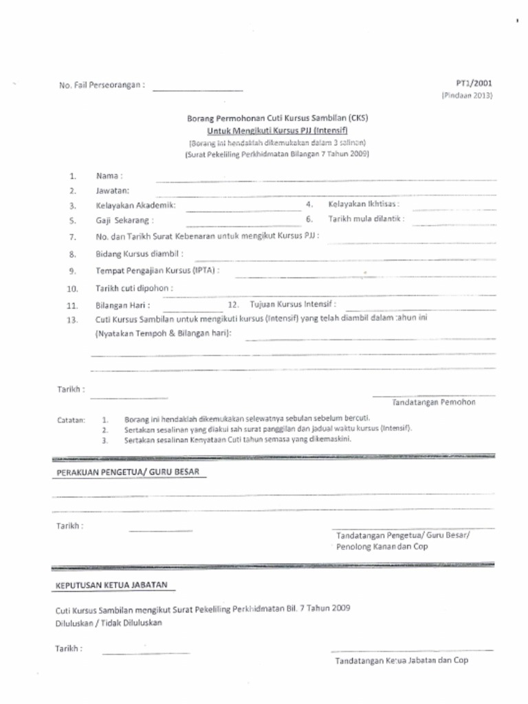 Borang Permohonan Cuti Kursus Sambilan Kpm