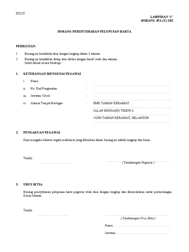 Lampiran C Borang Jpa T 2 02 Tandatangan Pegawai