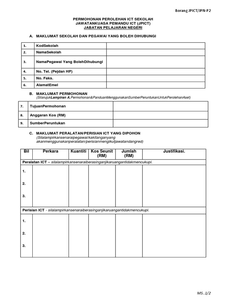 Borang Jpict Jpn Permohonan Peralatan Ict Untuk Sekolah Harian Sahaja Doc Borang Jpict Jpn Permohonan Perolehan Peralatan Ict Sekolah Jawatankuasa