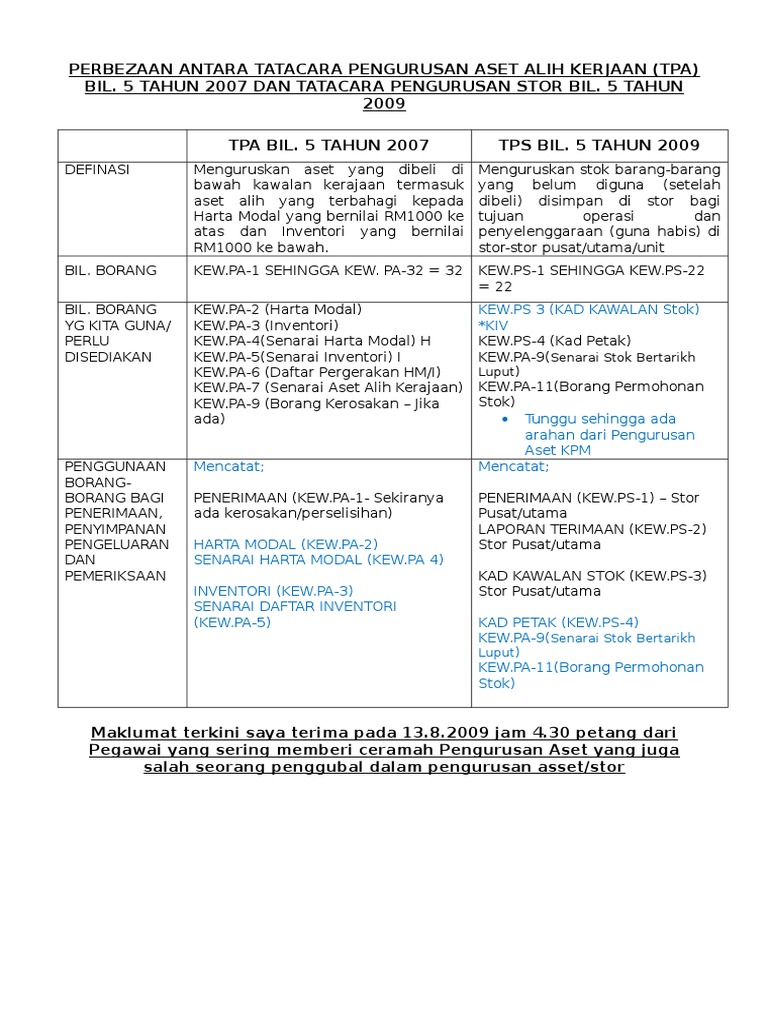 Universiti teknikal malaysia melaka. Kew pa 9 borang aduan kerosakan aset alih kerajaan 28 kew pa 10 laporan pemeriksaan harta modal 29 kew pa 11 laporan pemeriksaan inventori 30 kew pa 12 sijil tahunan pemeriksaan harta modal dan inventori 31 bab d penyelenggaraan 19 22 32 kew pa 13 senarai aset yang memerlukan penyelenggaraan 34 kew pa 14 daftar penyelenggaraan harta. Kod kuantiti permohonan pegawai pelulus catatan perihal stok. Pekeliling perbendaharaan malaysia am 2 4 lampiran b nota.