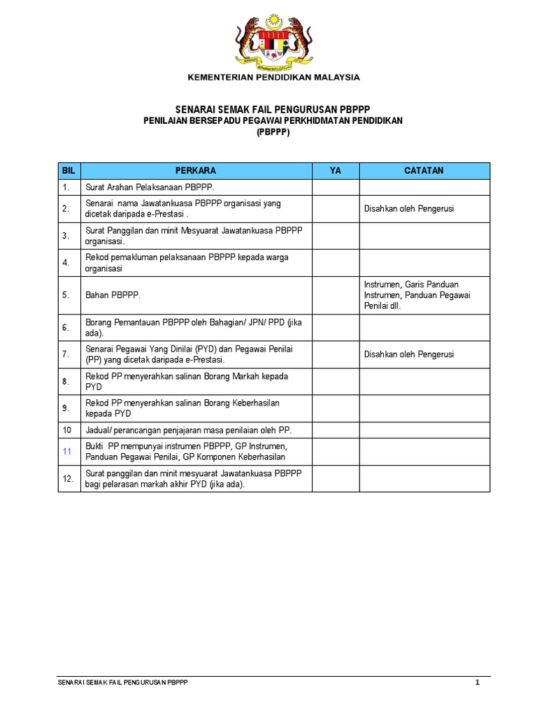 Borang Penilaian Kendiri Pbppp 2016 1 2 Xls Xlsx