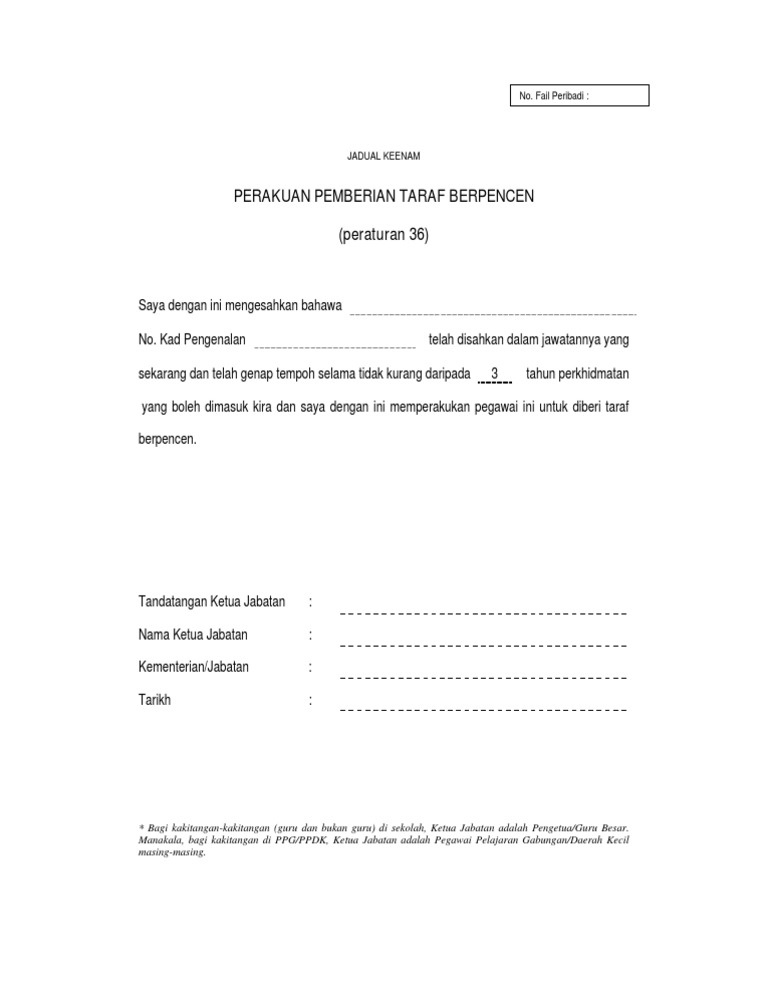 Jadual Keenam Borang Pemberian Taraf Berpencen
