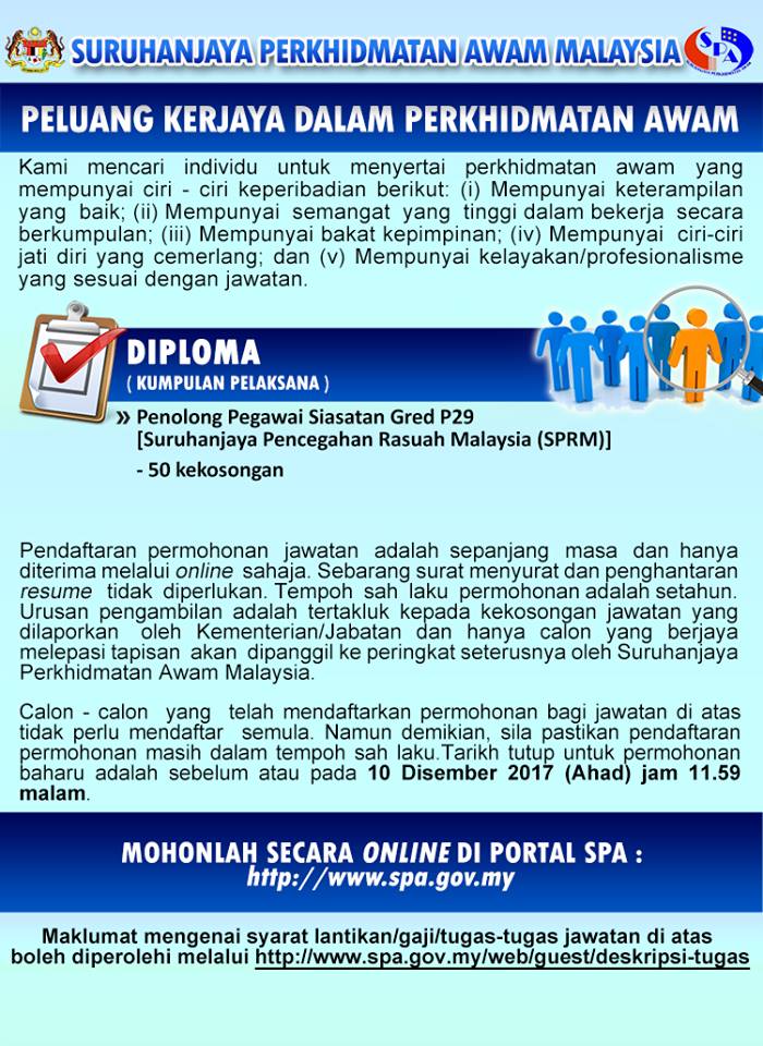 Jawatan Kosong Kerajaan 2017 Di Suruhanjaya Pencegahan Rasuah Malaysia Sprm 10 Disember 2017 Appjawatan Malaysia
