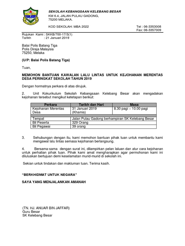 Surat Mohon Bantuan Polis Trafik Merentas Desa 2019