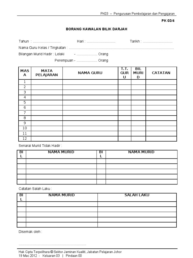 Pk03 4 Borang Kawalan Bilik Darjah