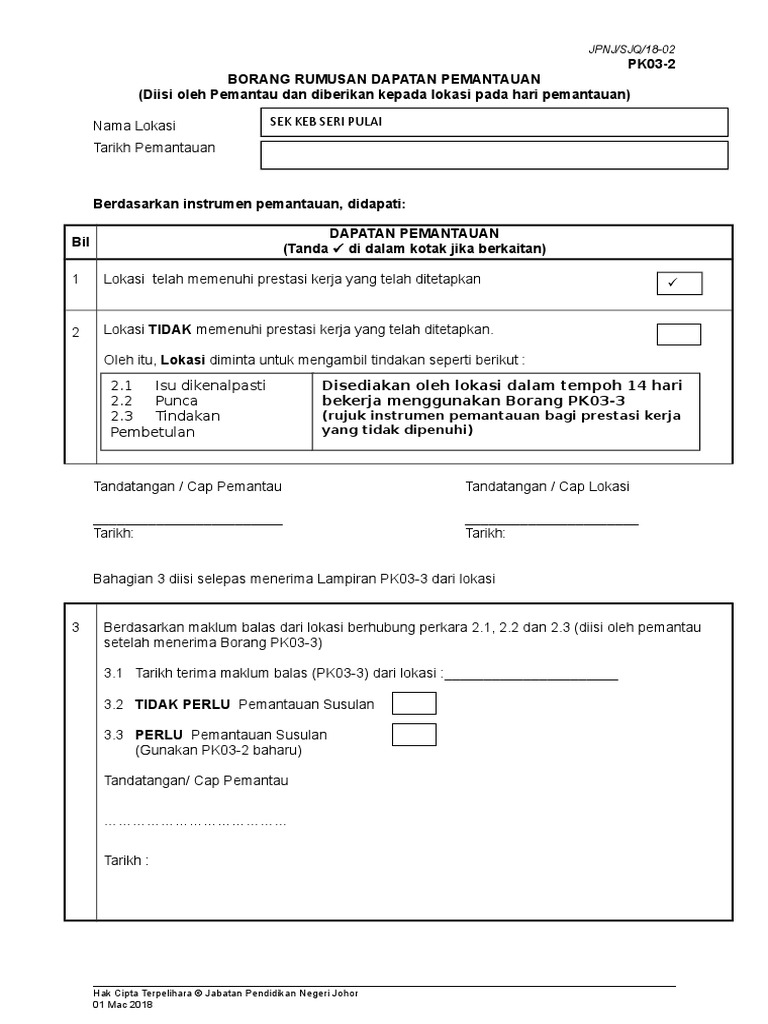 Pk03 1 Borang Rumusan Dapatan Pemantauan