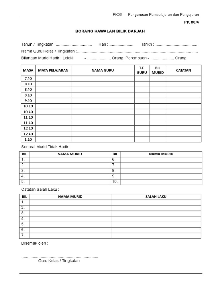 Pk03 4 Borang Kawalan Bilik Darjah