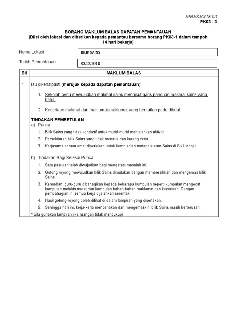 Sekolah Kualiti Sabak Bernam Contoh Menjawab Borang Pk 03 1 Mb Pemantauan Spsk