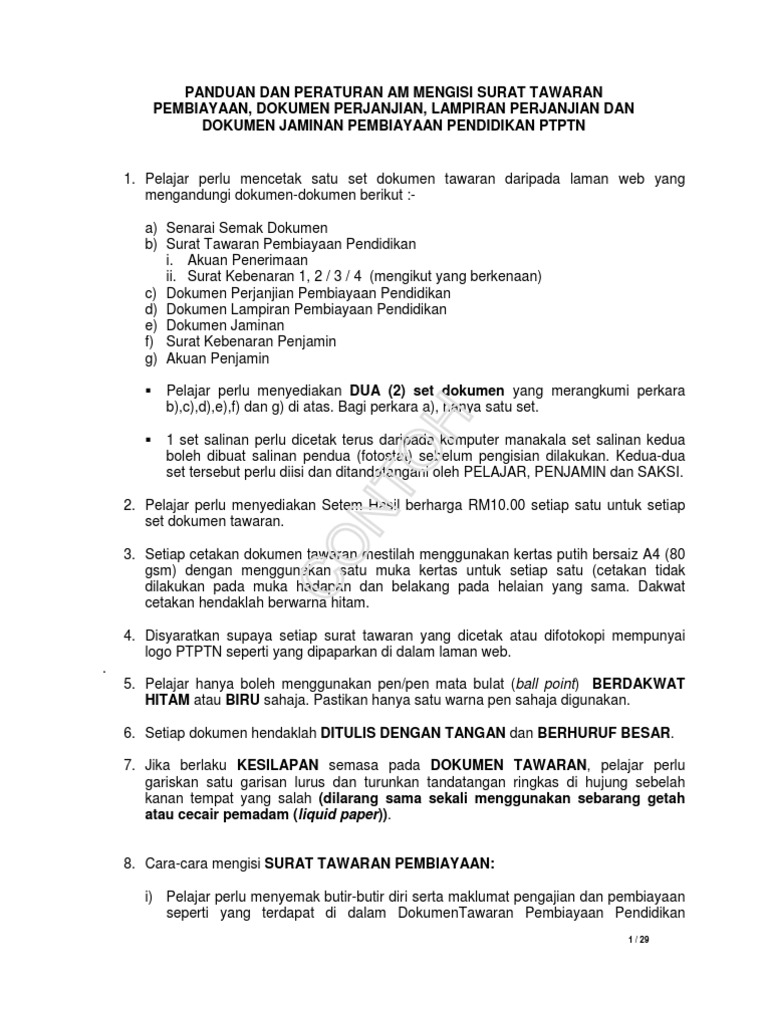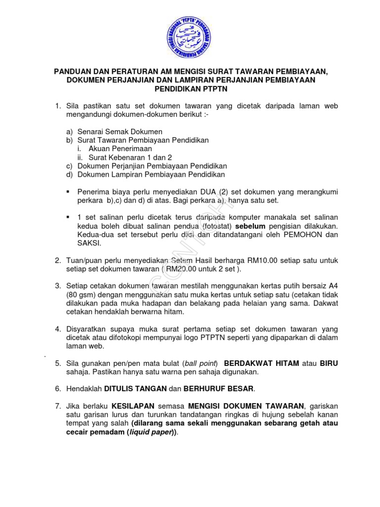 Panduan Dan Peraturan Mengisi Surat Tawaran Dokumen Perjanjian Lampiran Perjanjian Dan Akuan Terimaan Surat Tawaran Dan Dokumen Perjanjian Ptptn Pdf Download Gratis