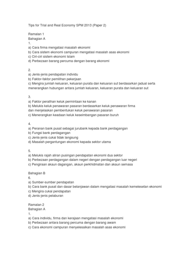 Ekonomi Asas Tips Spm 2013 Pdf Document
