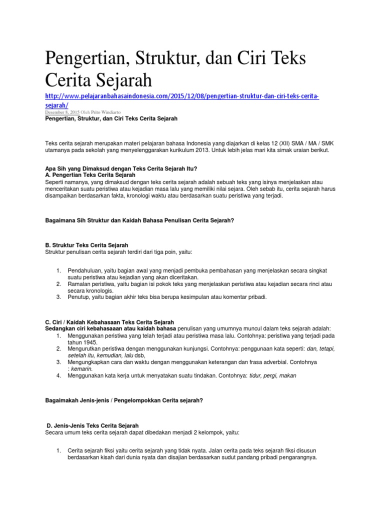 Teks Cerita Sejarah Pengertian Struktur Nilai Kaidah Dsb Serupa Id