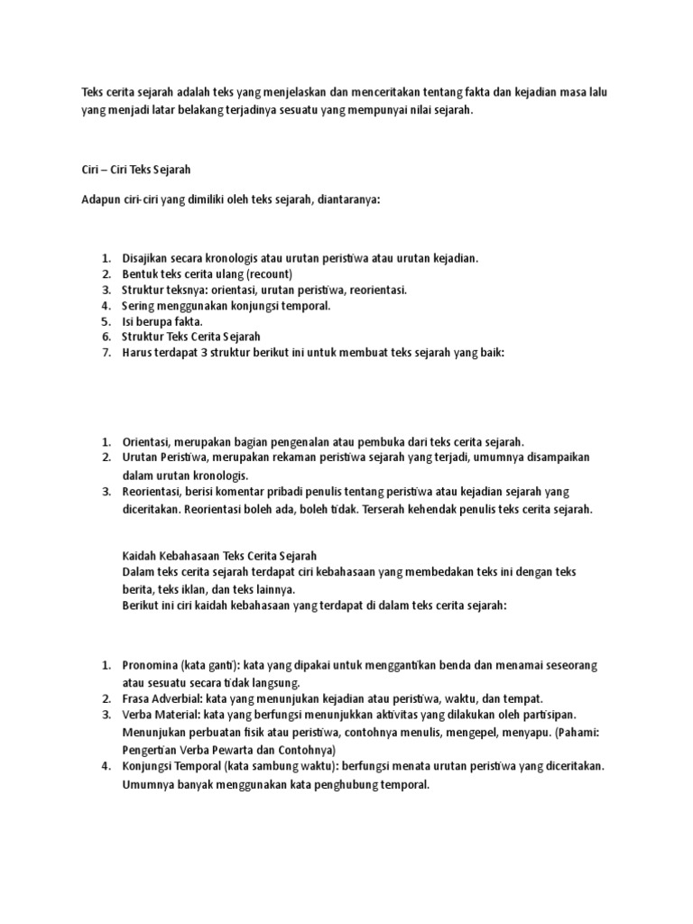 Ciri Ciri Teks Cerita Sejarah Adalah
