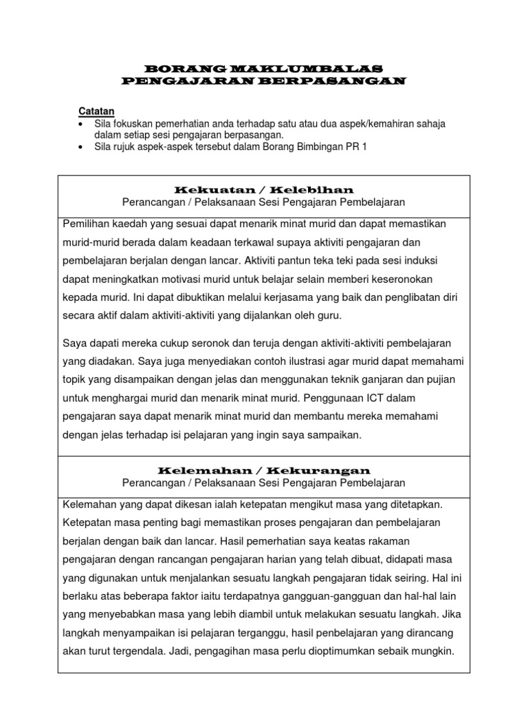 Contoh Borang Maklum Balas Murid