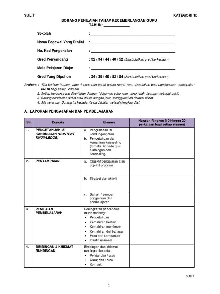 Borang Penilaian Tahap Kecemerlangan Guru 1b Doc