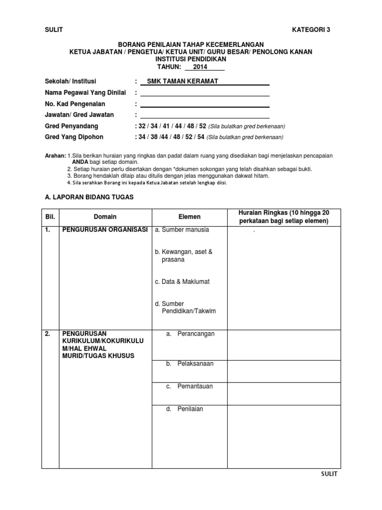 Borang Penilaian Tahap Kecemerlangan Guru Contoh Isi Borang Dg 48