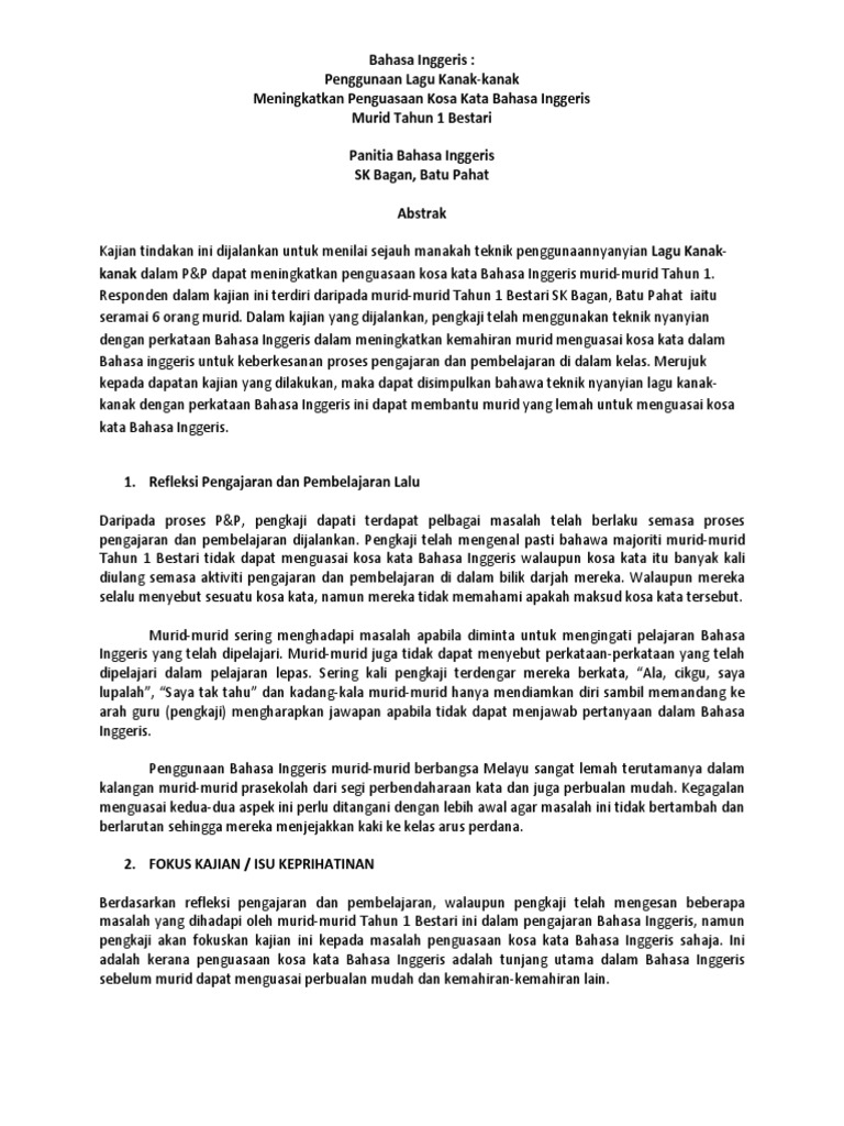 Contoh Kajian Tindakan Bahasa Inggeris Sekolah Rendah