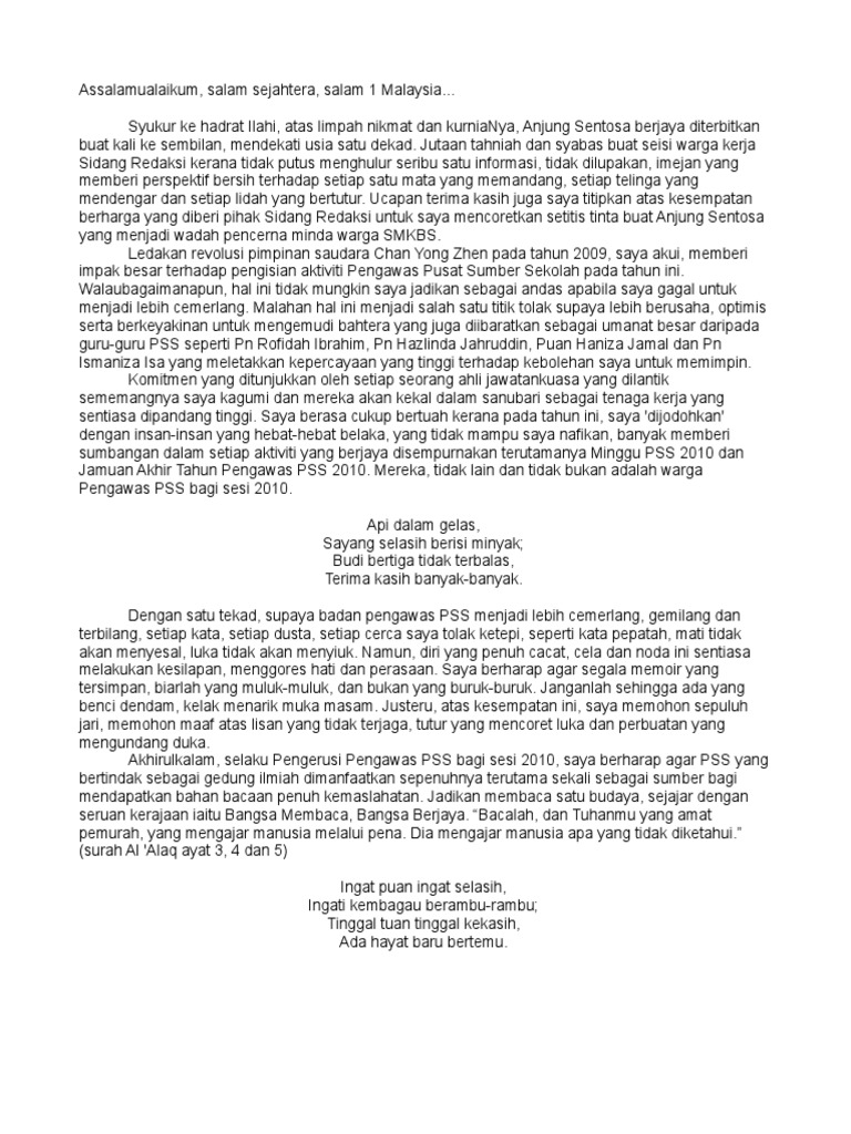 Contoh Ucapan Kata Alu Aluan Pengerusi Untuk Majalh Sekolah Karangan