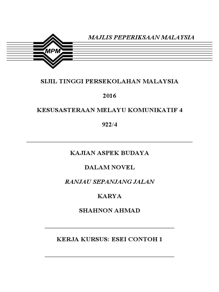 Contoh Kerja Kursus Bahasa Melayu Tingkatan 6 Penggal 3 2015 Stpm