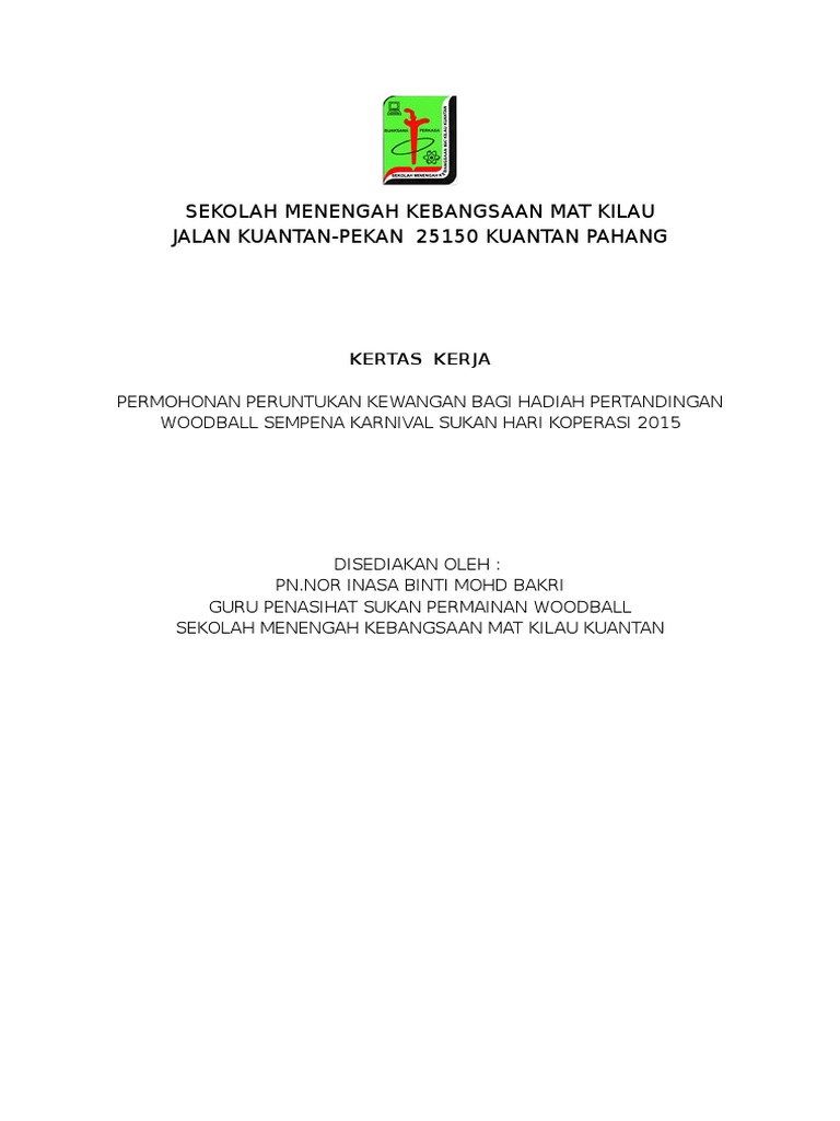 Contoh Kertas Kerja Permohonan Peruntukan Kewangan Sukan