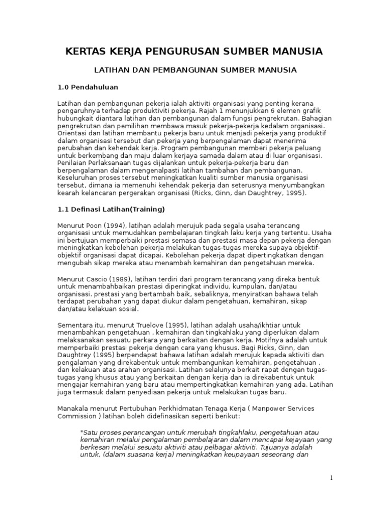 Latihan juga mempercepatkan mereka mengenalpasti kelemahan dan keupayaan masing masing bagi mengurangkan jurang antara keadaan sedia ada dengan jangkaan kerja seperti yang ditetapkan oleh organisasi. Syarikat ini telah dibangunkan oleh 2 rakan kongsi yang gemar akan makanan pastri iaitu encik aminuddin dan isterinya puan amirah. Kertas kerja kertas kerja latihan personal. Kertas kerja pengurusan sumber manusia 1.