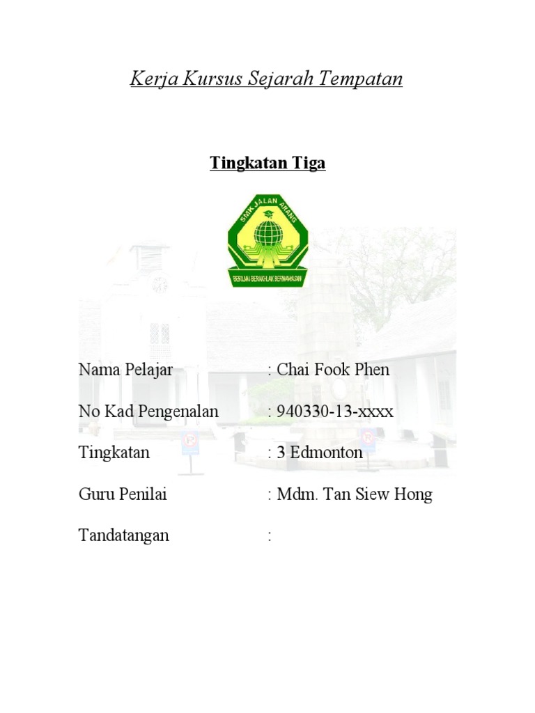 Kerja Kursus Sejarah Pt3 2019 Contoh Terbaik