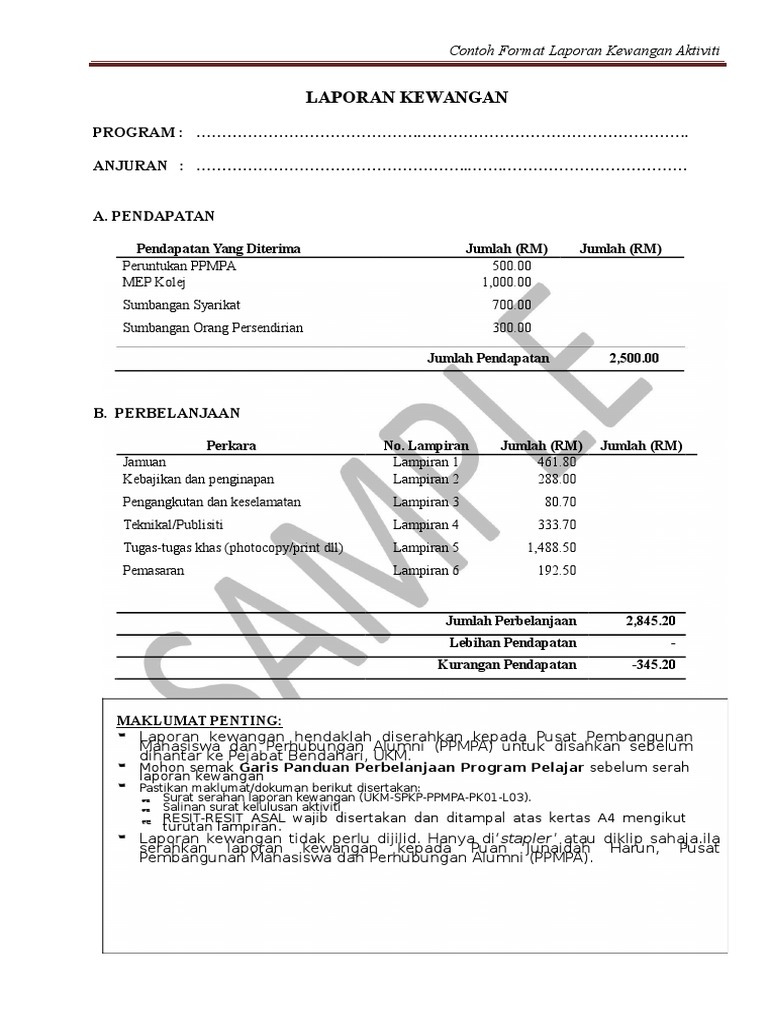 Contoh Penyata Kewangan Program