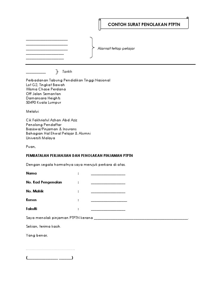 Surat Penyelesaian Hutang Sph Pinjaman Pendidikan Ptptn Herneenazir Com