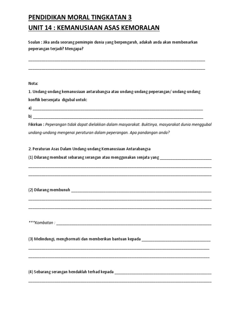 Pendidikan Moral Tingkatan 3 Nota Perang Docx
