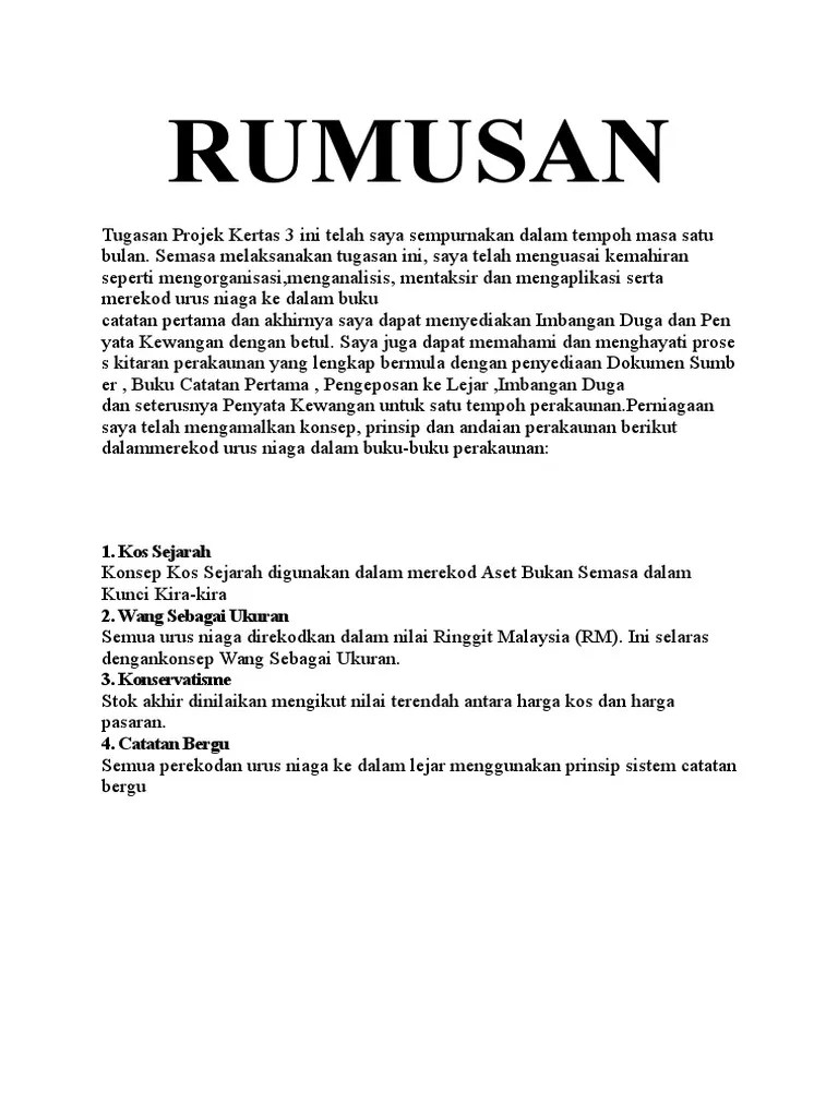 Contoh Rumusan Kerja Kursus Sejarah Tingkatan 1