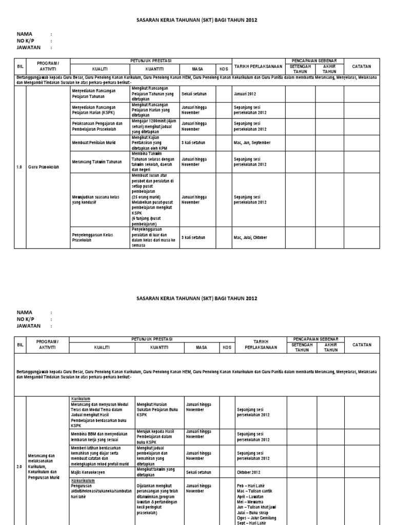 Contoh Sasaran Kerja Tahunan Gpk Ko Docx