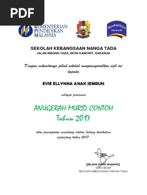 Contoh Sijil Anugerah Pelajar Cemerlang