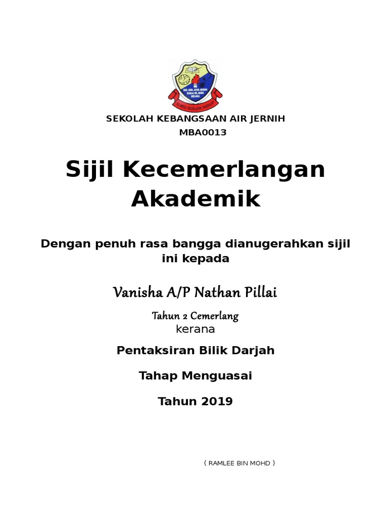 Contoh Sijil Kecemerlangan Akademik