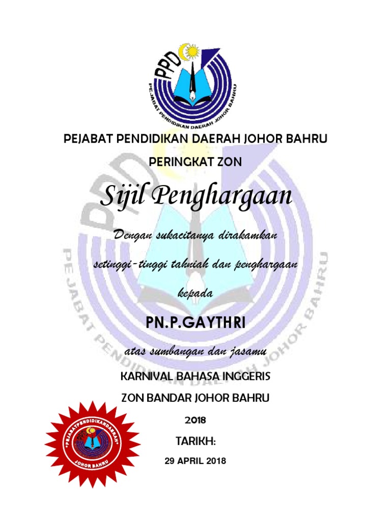 Sijil Penghargaan Dalam Bahasa Inggeris