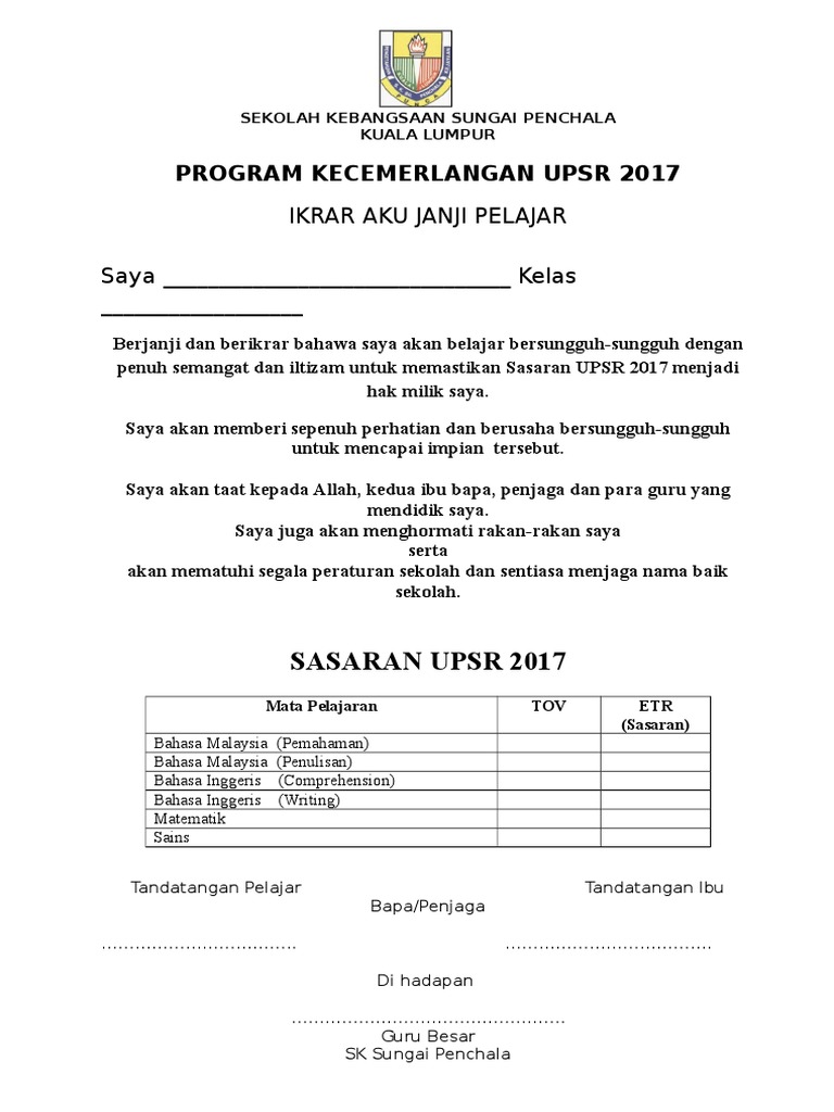 Surat Aku Janji Pelajar 1