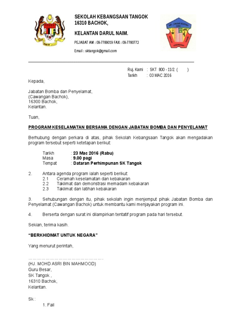 Surat Rasmi Permohonan Latihan Kebakaran Surat Rasmi E