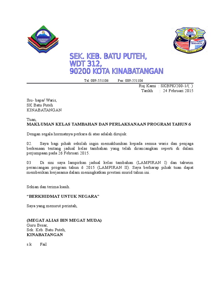 Contoh Surat Makluman Kelas Tambahan