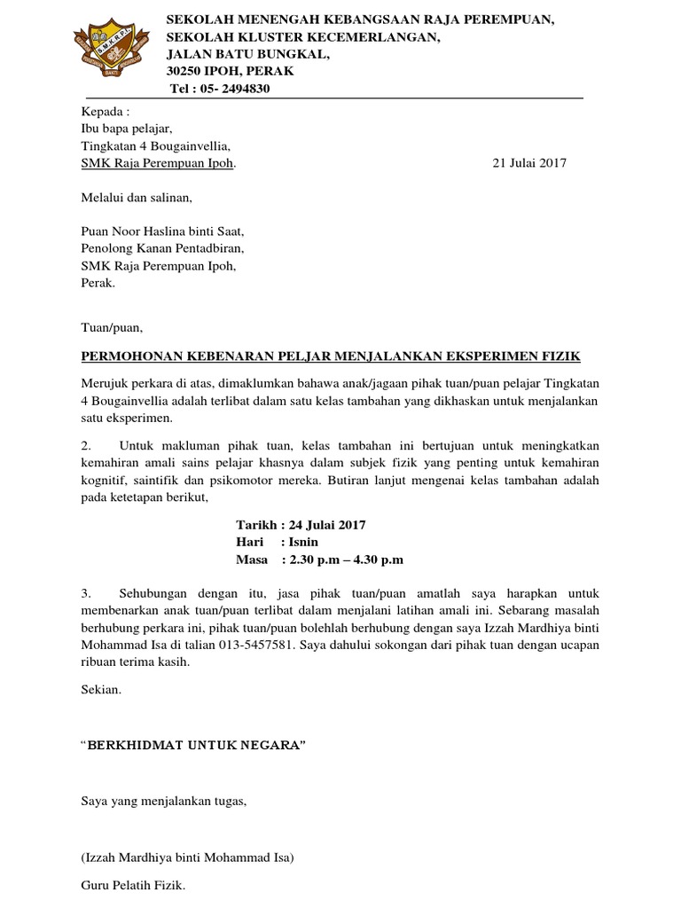 Doc Contoh Surat Kebenaran Ibu Bapa Dol Juan Academia Edu