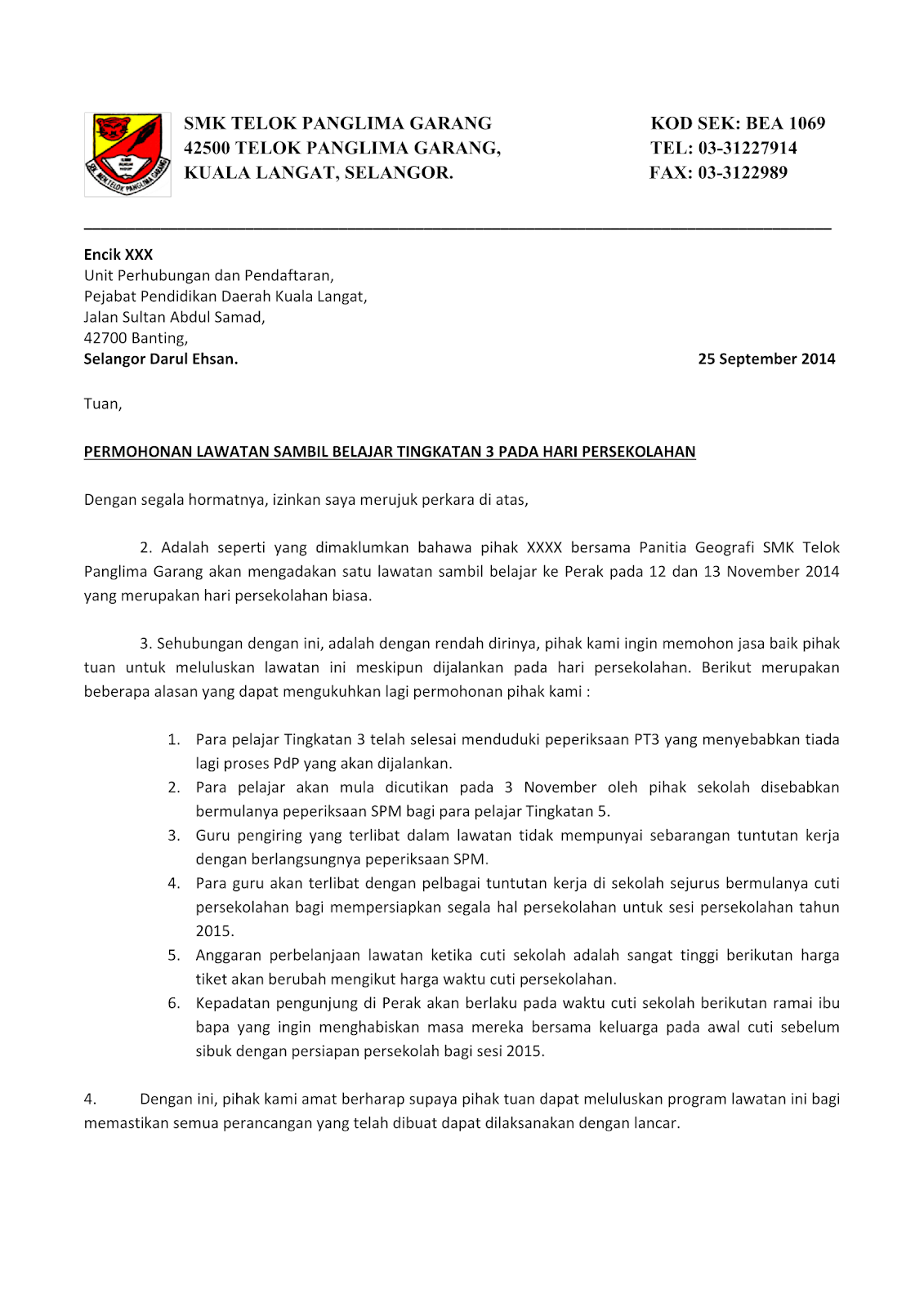 T B S Dokumen Contoh Surat Permohonan Pelepasan Lawatan Surat Sokongan