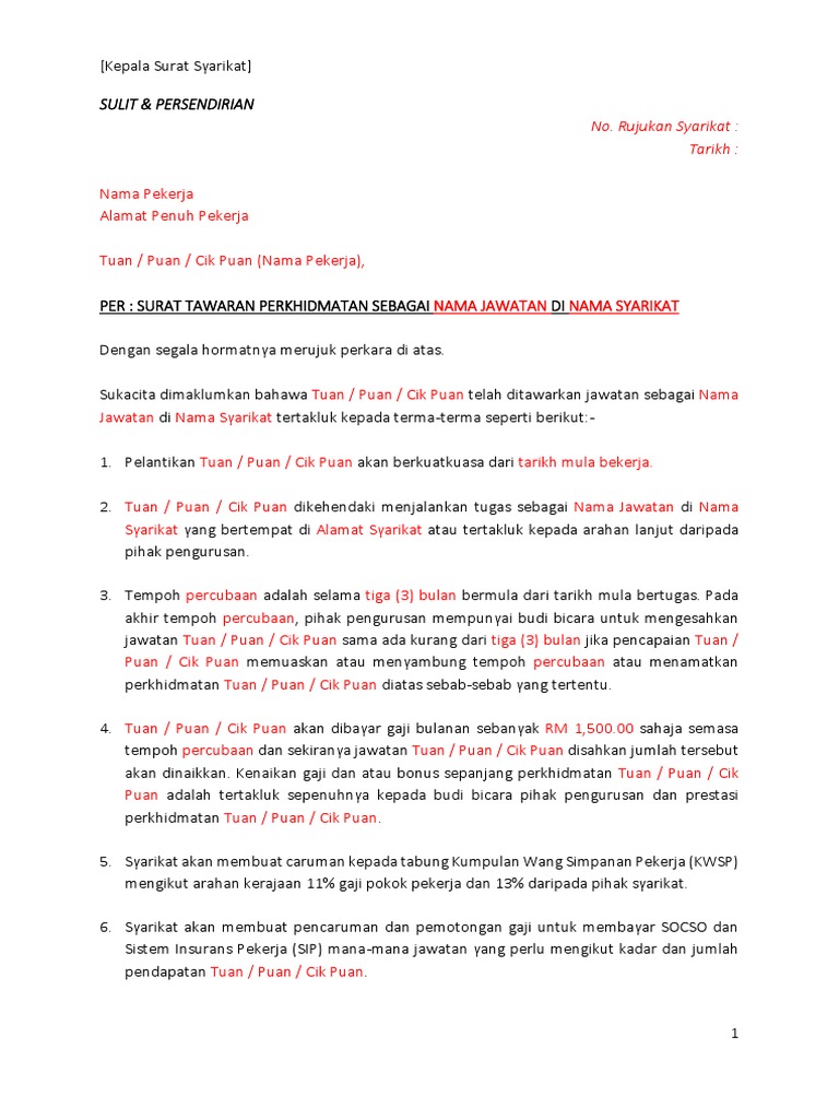 Contoh Surat Pelanjutan Tempoh Percubaan Pekerja
