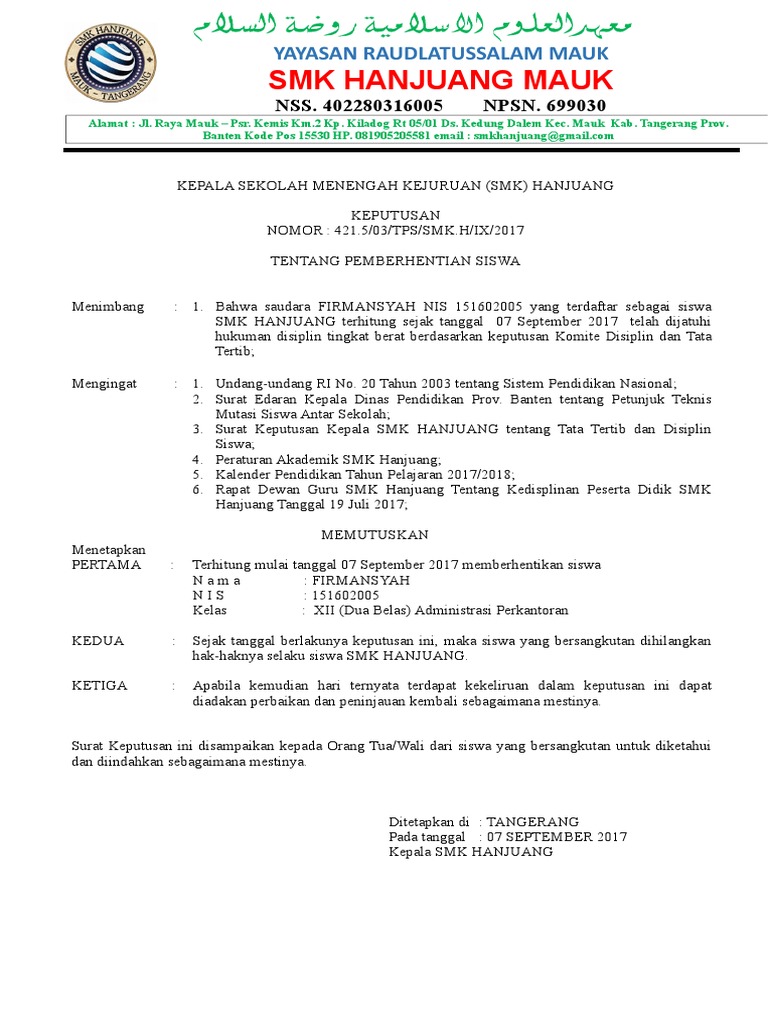 Contoh Surat Pemberhentian Siswa Dari Sekolah Guru Ilmu Sosial