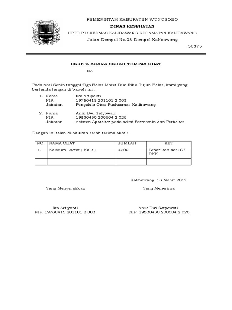 Berita Acara Serah Terima Tugas Tanggung Jawab Dan Wewenang