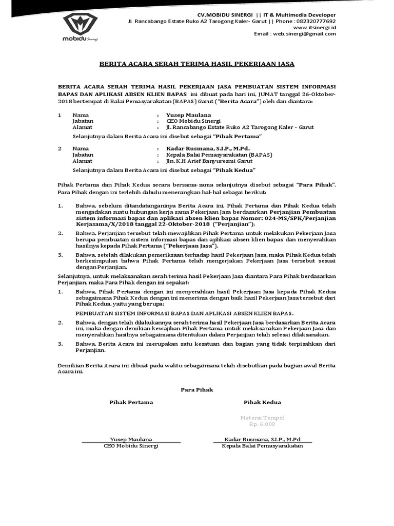 Berita Acara Serah Terima Hasil Pekerjaan Jasa