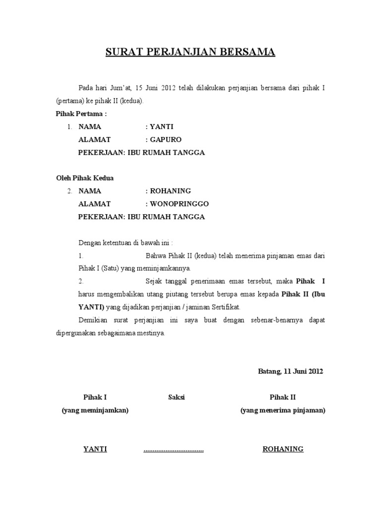 Contoh Surat Perjanjian Hutang Dengan Jaminan Bagi Contoh Surat