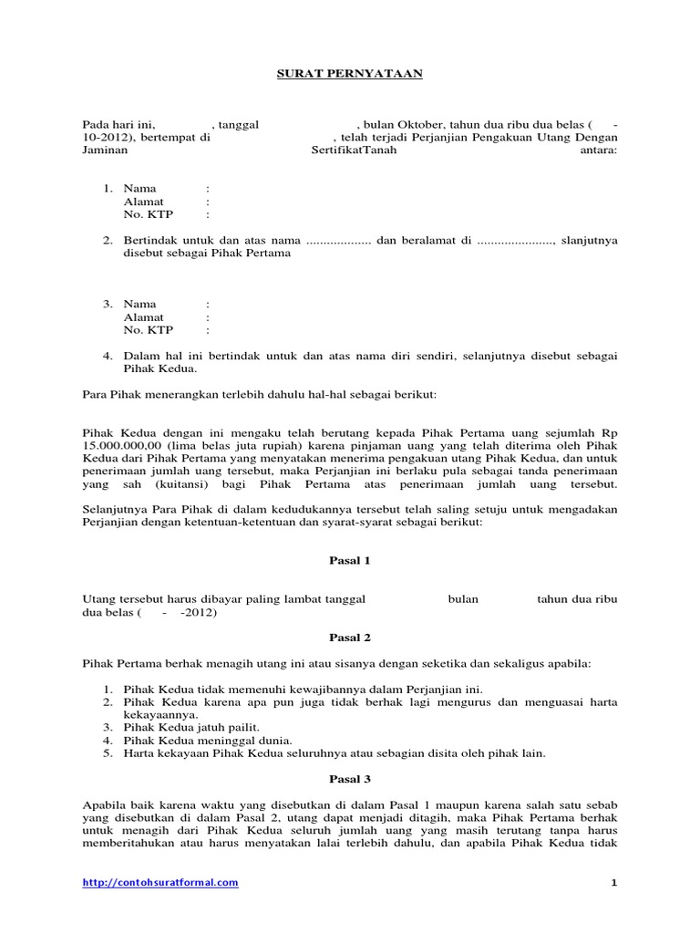 Doc Contoh Surat Pengakuan Hutang Dany Satyogroho Academia Edu